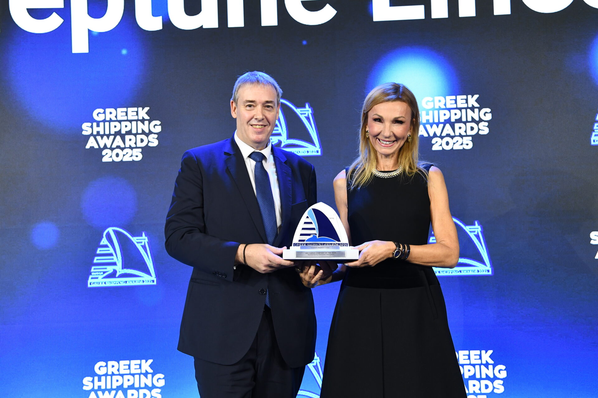 Dry Cargo Company of the Year – Matthew Ian More of sponsor Marichem Marigases presenting the Award to Melina Travlos of Neptune Lines