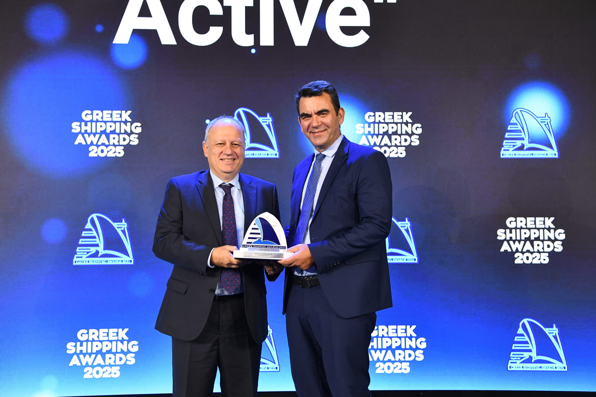 Ship of the Year – Ilias Kariambas, vice president, Southern Europe Business Development of sponsor ABS presenting the Award to Miltos Zisis managing director of Capital Gas Ship Management owners of ‘Active’